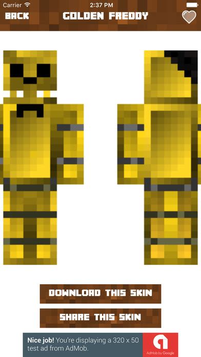Free Minecraft Skins for Pocket Edition PE PC and Builder K MC. Whenever I'm trying to get a skin it won't let me get any because when I press a skin I want to get the app the freezes and I HATE IT because I NEED MY FIVE NIGHT'S AT FREDDY'S SKINS, so please try to fix this little issue...